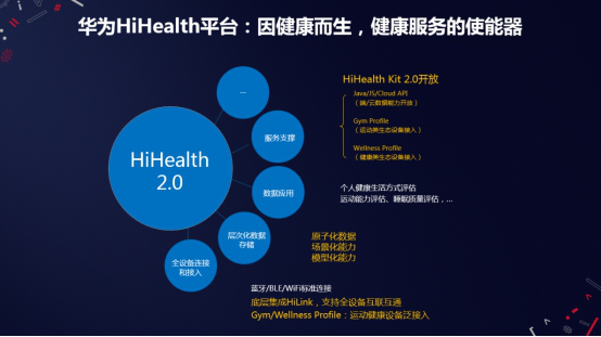 2019年7月16日,国家发布了《国务院关于实施健康中国行动的意见》,标志着全民健康已从顶层战略落实到具体行动,我国将迎来全民健康时代。8月10日在华为HDC.2019智能穿戴&运动健康分论坛上,华为发布了全新升级的HiHealth平台开放能力2.0,期待与合作伙伴共建健康产业生态,为消费者提供全场景健康新体验。
