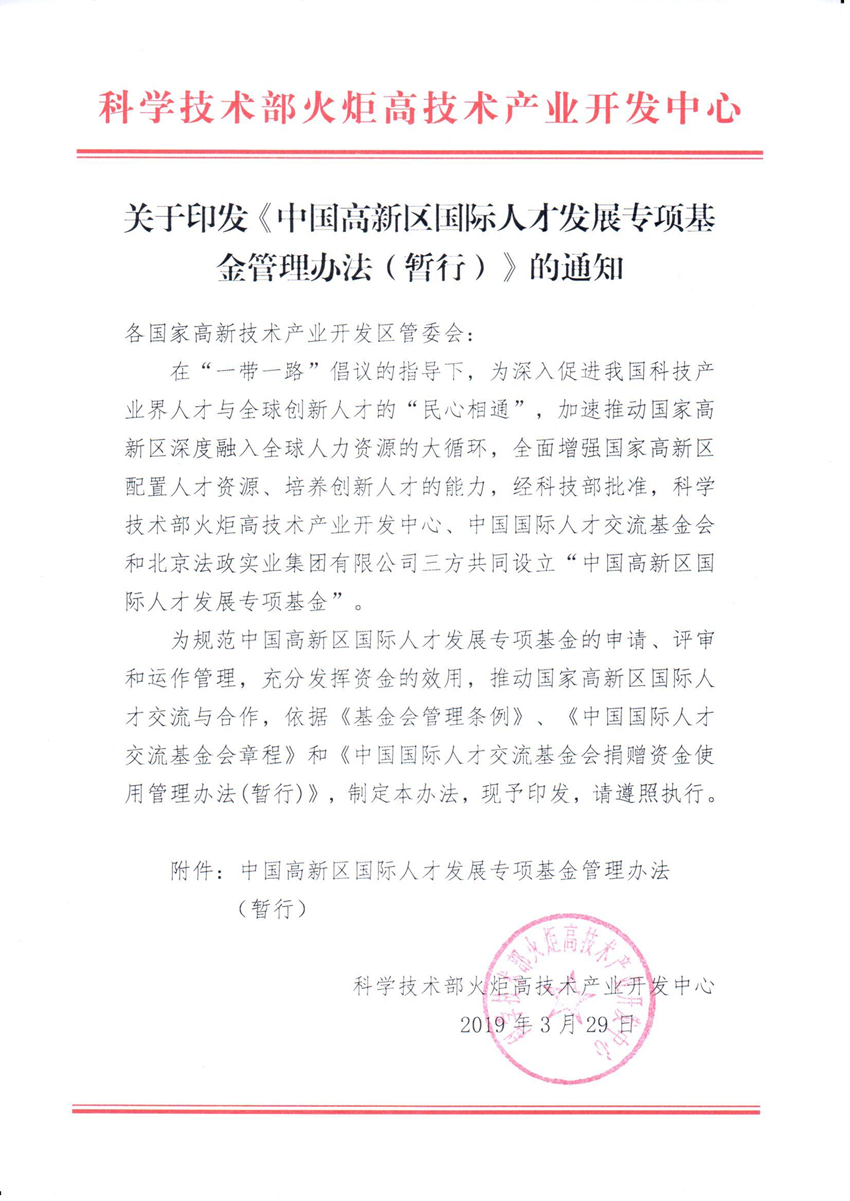 附件:中国高新区国际人才发展专项基金管理办法(暂行)